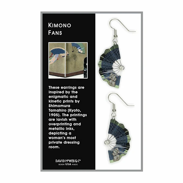 Ces boucles d’oreilles en laiton s’inspirent des gravures énigmatiques et cinétiques de Shimomura Tamahiro (Kyoto, 1905). Les impressions sont somptueuses, avec des surimpressions et des encres métalliques, et dépeignent le dressing le plus privé d’une femme.
