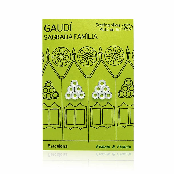 Ces boucles d’oreilles en argent sont inspiré des précieuses fenêtres de l’œuvre la plus emblématique d’Antoni Gaudí, la Sagrada Familia, dans la ville de Barcelone. Boucle d’oreille de forme triangulaire, mais avec une forme sinueuse qui ressemble aux fenêtres de la Sagrada Familia.