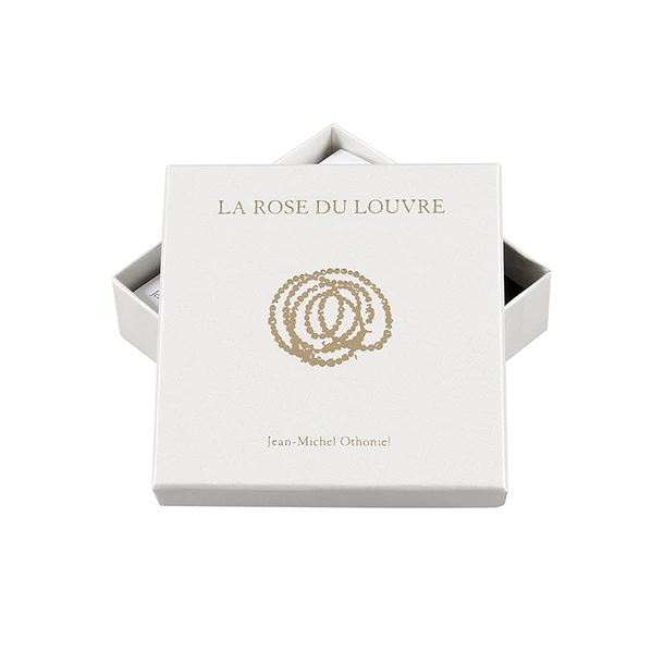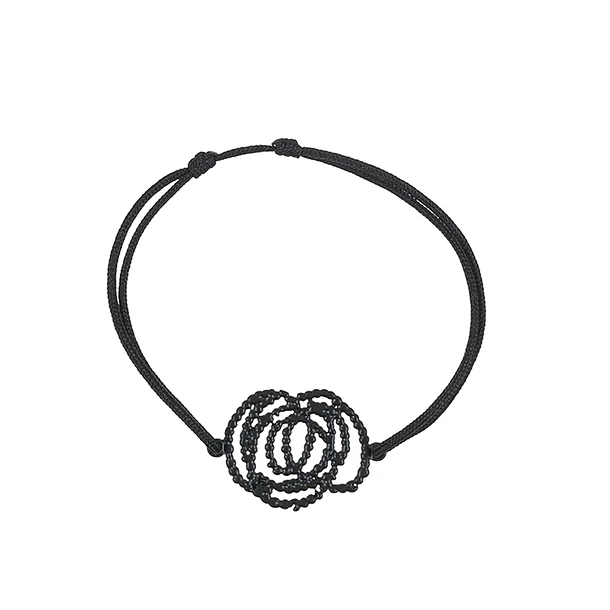 Bracelet cordon noir « Rose du Louvre » fabriqué en France, inspiré par une création originale de l’artiste Jean-Michel Othoniel.