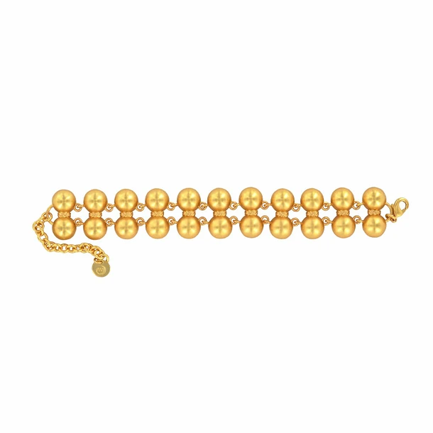 Le bracelet, formé de deux rangées de onze paires de demi-sphères creuses séparées par une torsade se rattache à une série de bijoux qui connut une très grande vogue au 1er siècle de notre ère, comme en témoignent les nombreux exemples conservés dans les musées de Pompéi et de Naples.