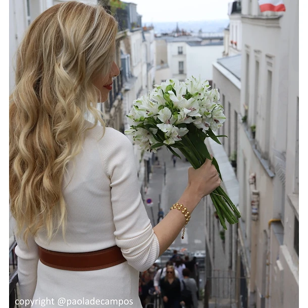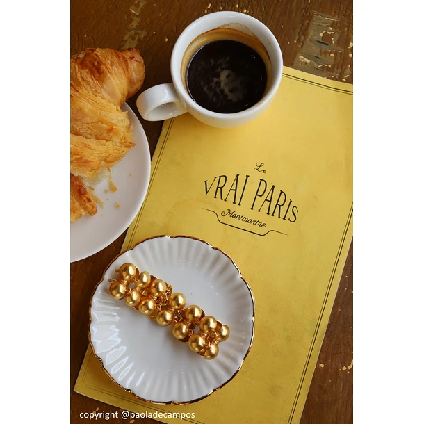 Ce bijou en laiton doré s’inspire d’un bracelet trouvé parmi un ensemble de bijoux dans une villa de Boscoreale, ville située au pied du Vésuve, non loin de Pompéi.