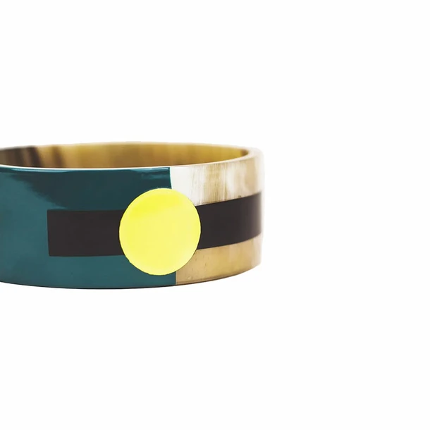 Bracelet en corne blonde de zébu africain et laque tricolore de la marque L’Indochineur.