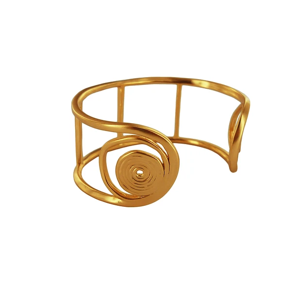 Mycènes, cité du Péloponnèse, a donné son nom à la civilisation qui domina la mer Égée du XVIe au XIe siècles avant J.-C.; son émergence correspond au déclin de la civilisation minoenne. Guerriers, bâtisseurs d’imposantes citadelles fortifiées et d’impressionnantes sépultures, les Mycéniens furent également des sculpteurs, céramistes et orfèvres raffinés, et l’influence et l’inspiration crétoises restent très présentes dans leurs créations artistiques. Les armes d’apparat, masques funéraires, vases, et nombreux bijoux découverts lors des fouilles de tombes révèlent l’excellence du travail des orfèvres mycéniens. Cette boucle d’oreille « en spirale » en est un bel exemple : forme épurée de la spirale, représentation de l’infini, couleur de l’or jaune, patine, finitions à la main légèrement irrégulières.