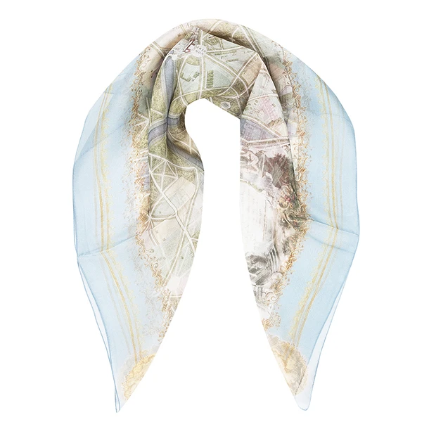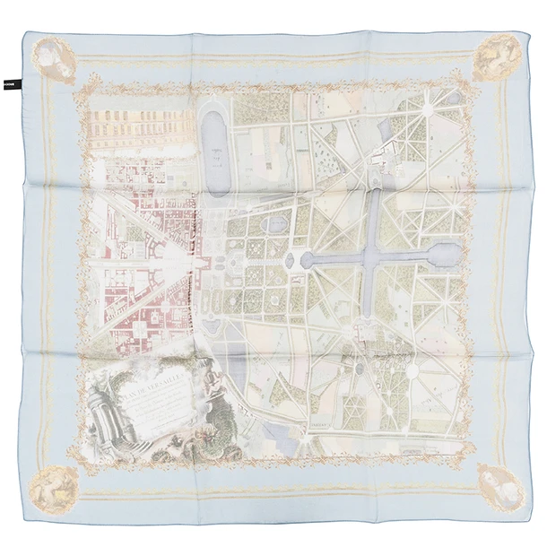 Ce carré de soie reprend le motif des Plans de Versailles.
