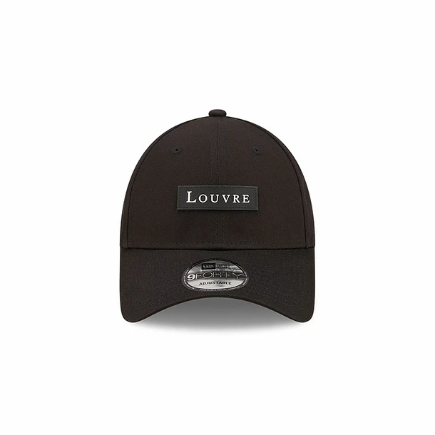 Casquette officielle New Era 9FORTY Noire logo « Louvre » avec le logo brodé et blanc New Era à gauche, la casquette est ajustable et a une visière incurvée et extensible.