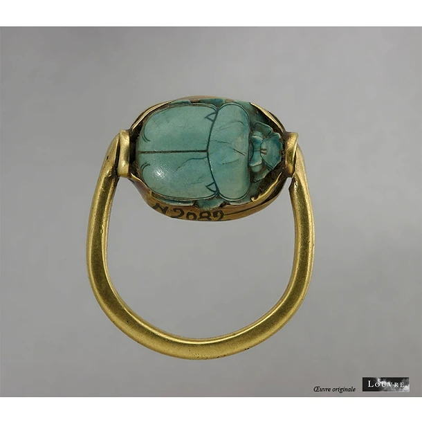 Bijou inspiré d’une bague à chaton pivotant au nom du scribe et directeur du harem du roi, Iâhmès.