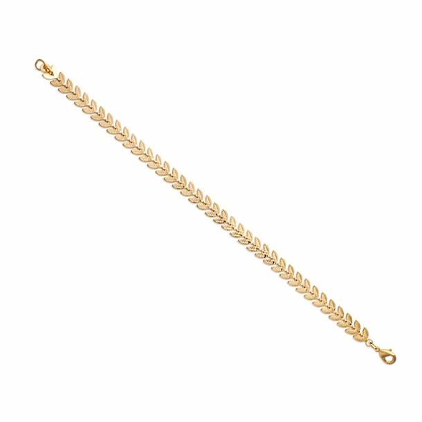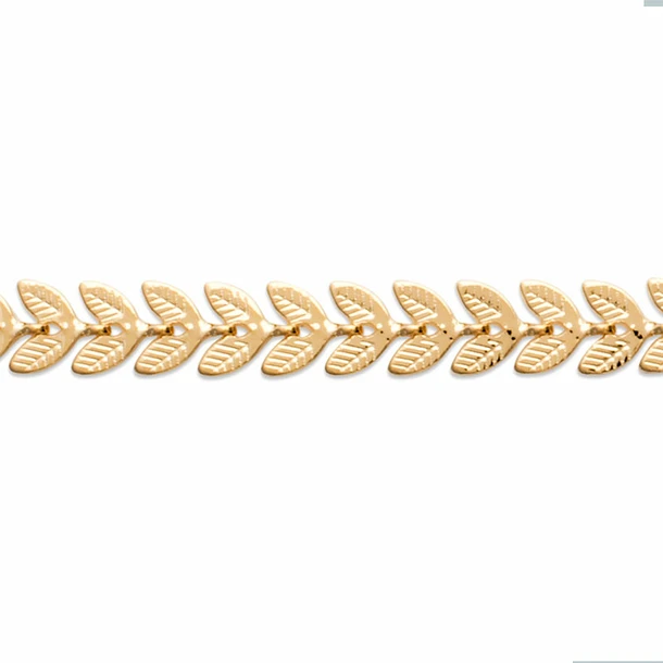 Ce collier en laiton plaqué or au design élégant et minimaliste reprend un motif décoratif avec des feuilles de laurier.