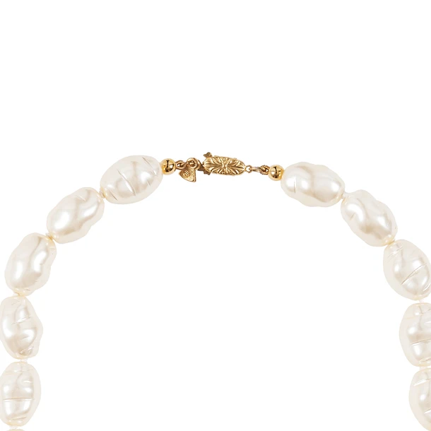 La courtisane porte un collier de perles et des boucles d’oreilles, indiquant certainement son mode de vie décadent. Les perles sont considérées comme des attributs de Vénus, déesse de l’amour, et symbolisent souvent l’amour vénal.