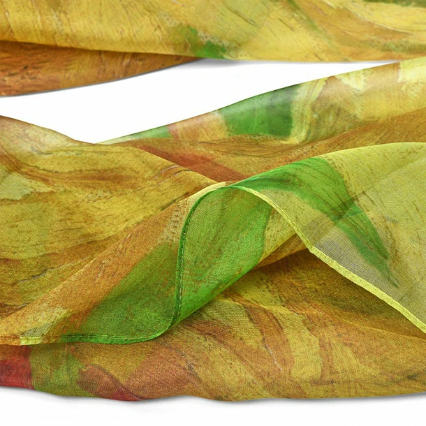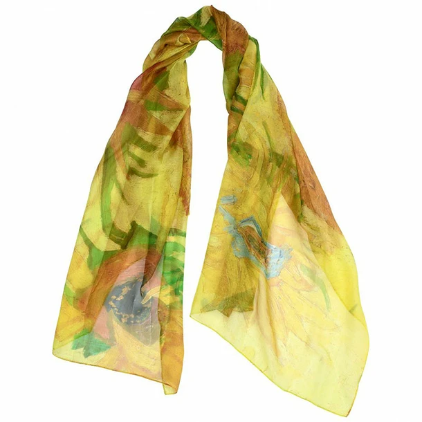 Égayez votre look avec cette élégante étole imprimée d’un détail de l’une des peintures les plus célèbres de Vincent van Gogh (1853 – 1890), « Les tournesols », 1889, collection du musée Van Gogh, Amsterdam.