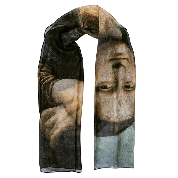 Le visuel de cette étole reprend un détail de l’œuvre emblématique de Léonard de Vinci (1452-1519), Portrait de Lisa Gherardini, dite Monna Lisa ou la Joconde.