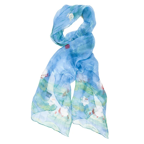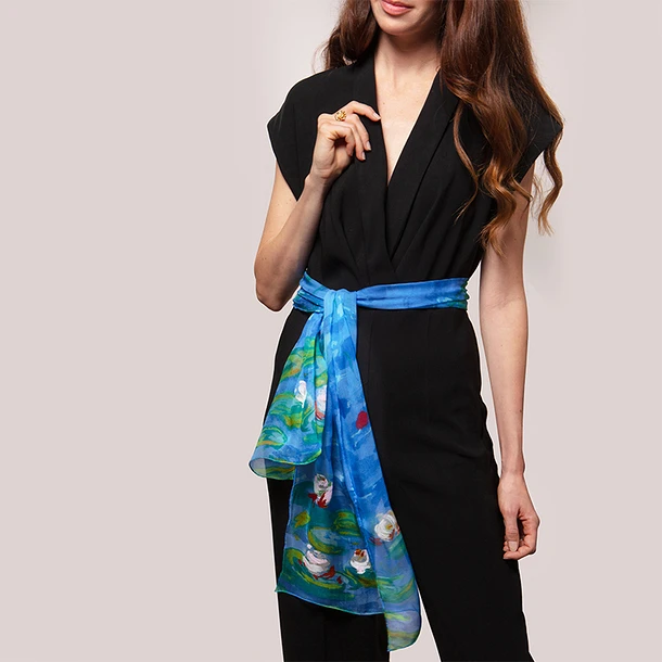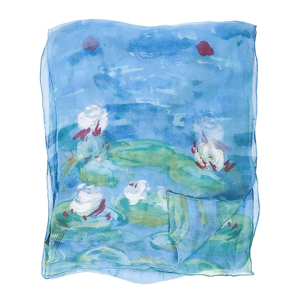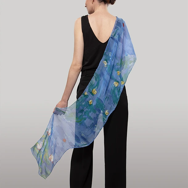 Cette étole de soie est inspirée par les fascinants nymphéas de Claude Monet.