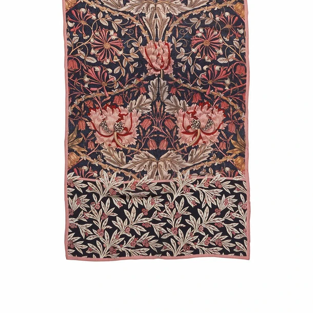 Combinant deux imprimés de la collection textile du V&A, cette écharpe Arts and Crafts présente le chèvrefeuille de William Morris avec un tissu de bordure contrastant, Stafford, conçu par Bruce James Talbert. Fabriquée au Royaume-Uni, cette écharpe en pure soie, qui souligne l’importance de l’artisanat britannique selon William Morris, apportera une touche élégante et colorée à toutes vos tenues.