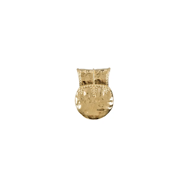 Ce bijou en laiton doré bronze s’inspire d’un bijou de la Grèce antique, période hellénistique (323 – 31 av J. C), dont l’original en or est conservé au musée du Louvre.