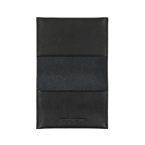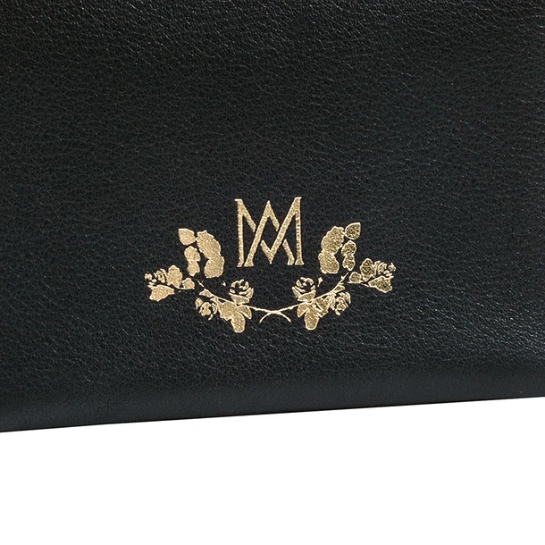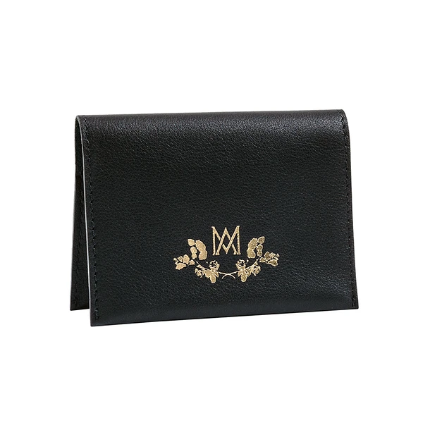 Porte-cartes double Ines de la Fressange en cuir noir offrant une réinterprétation du monogramme de la Reine Marie-Antoinette.