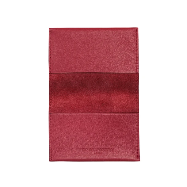 Porte-cartes double Ines de la Fressange en cuir rouge offrant une réinterprétation du monogramme de la Reine Marie-Antoinette.