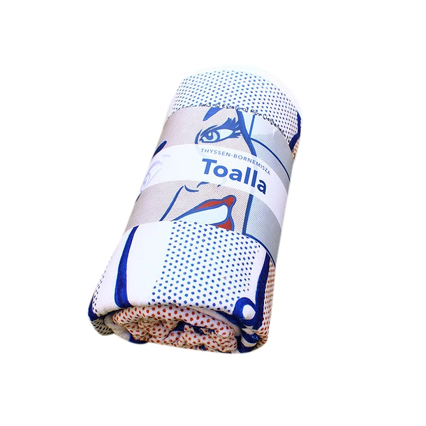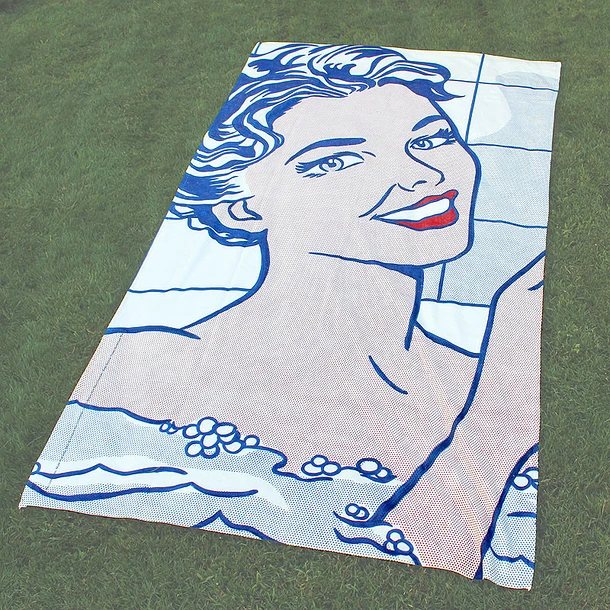 Cette serviette de bain ultra-légère en coton conçue et produite exclusivement pour le Museo Nacional Thyssen-Bornemisza, reproduit un détail de l’œuvre de l’artiste américain Roy Lichtenstein (1923 – 1997), Femme dans le bain (1963).